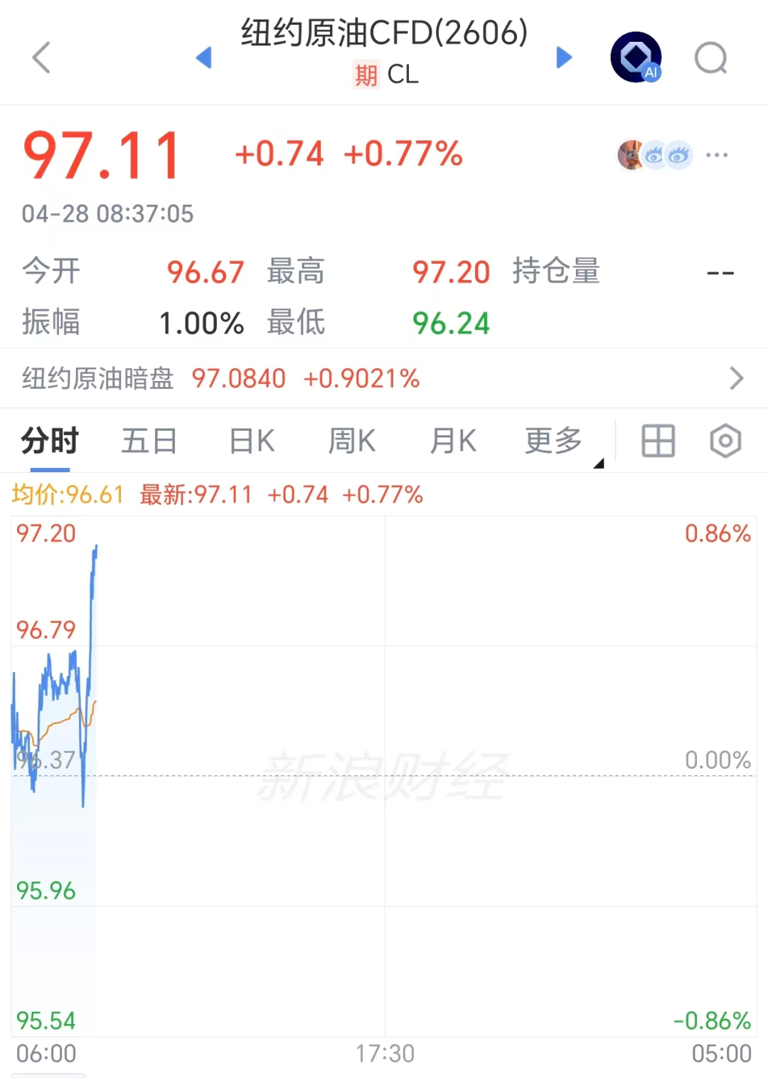 国际油价短线冲高,纽约原油涨近0.8%,布伦特原油涨0.65%。